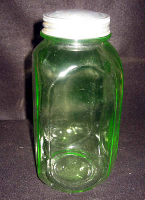 Vintage Vaseline Glass Cannister Jar.