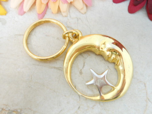 Title (ebay affiliate link): VINTAGE GOLD TONE CRESCENT MAN ON THE MOON STAR KEYCHAIN M3400