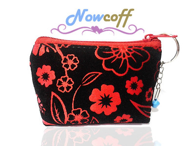 Title (ebay affiliate link): VINTAGE HOT RED FLOWER LADY GIRL COIN PURSE WALLET with CUTE BELL KEY CHAIN