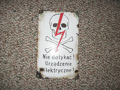 Vintage Porcelain Sign Skull & Crossbones Rare Poland Danger enamel Old 1930's