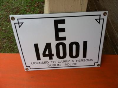 1920s Porcelain Taxi Advertising Sign,Vintage Dublin Police Taxi License Signage