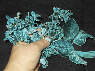 Title (ebay affiliate link): ANTIQUE MILLINERY LOT SILK VELVET TURQUOISE TINY FLOWERS/ DOLL HAT