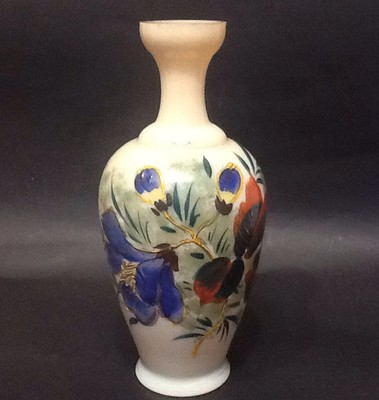 Title (ebay affiliate link): Bohemian Enamelled Milk Galss Vase, Late Victorian Vintage Collectables