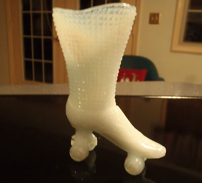 Title (ebay affiliate link): Fenton Milk Satin bl Glass Roller Skate 4 1/4" tall , 1 1/4" wide & 3 3/4" long