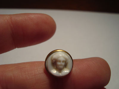 Antique brass relief MILK GLASS beautiful WOMAN with PARIS BKMK button