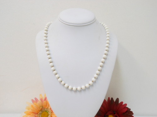 VINTAGE WHITE MILK GLASS BEAD GOLD TONE SPACER BEAD NECKLACE M3425