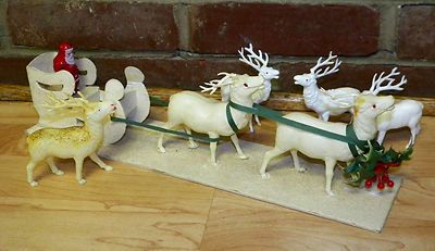 Title (ebay affiliate link): VINTAGE CELLULOID REINDEER SANTA SLEIGH & 4 EXTRA REINDEER JAPAN