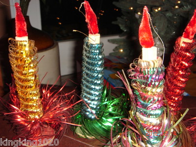 OLD VINTAGE ALUMINUM METALLIC TINSEL CANDLES CHRISTMAS ORNAMENTS DECORATIONS