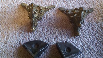 Antique Waterbury Black Mantel Clock Gilt Front & Back Feet Parts Set of 4