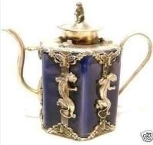 JADE COLLECTABLE BLUE SILVERED PLATED TEAPOT THE AA