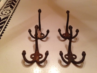 Title (ebay affiliate link): Four Antique Three Prong Acorn Head Coat Hooks Cast Iron
