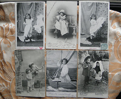 6 x 1900 Edwardian Child Scene Boat Hats Swim Suits Studio Photo Post Cards