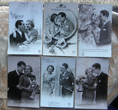 Title (ebay affiliate link): 6 1930s Deco Flapper Lady Romantic Couple b/w Paris Studio Photo Post Cards
