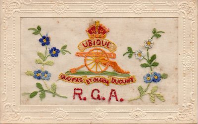 Title (ebay affiliate link): ROYAL GARRISON ARTILLERY: EMBROIDERED WW1 MILITARY SILK POSTCARD