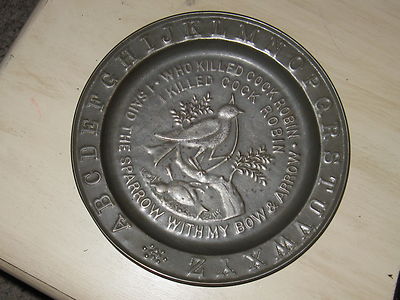 Vintage Tin Plate Alphabet Rustic Decor Antique Childs Dish