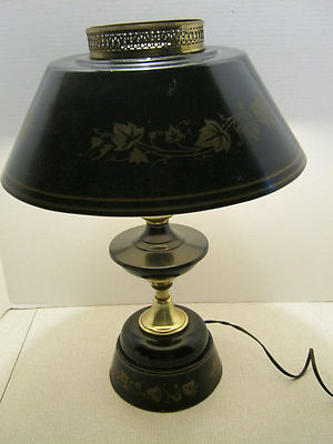 Title (ebay affiliate link): Vintage Tole Table/Desk Lamp Black & Gold Ivy Detail 19" w/Milk Glass Shade