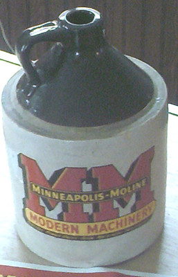 VINTAGE 1 GALLON CROCK JUG MINNEAPOLIS MOLINE NICE OLD JUG HERE