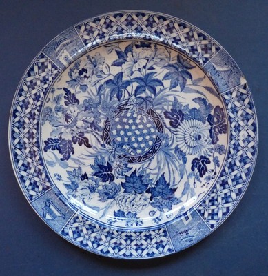 LARGE WEDGWOOD BLUE & WHITE EARTHENWARE PLATE - C.1840-50