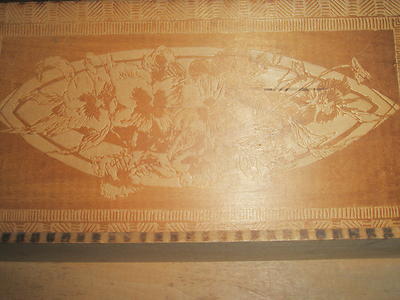 Antique Wood Trinket Glove Box Tramp Art Pansy Floral Motif Marked Hinges