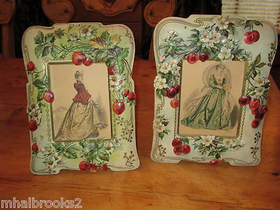 Title (ebay affiliate link): EMBOSSED PAIR antique Victorian picture frames cherry & cherry blossom w/ lithos