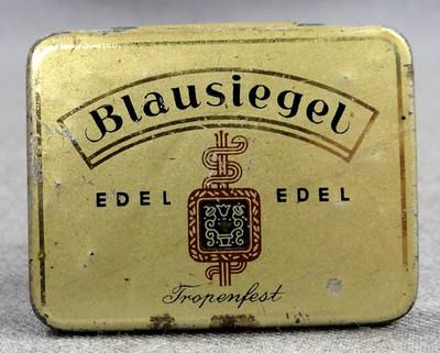 Title (ebay affiliate link): 1935 DECO GERMAN BLAUSIEGEL BLUE SEAL CONDOM LITHO TIN BOX CASE&ORIGINAL CONTENT
