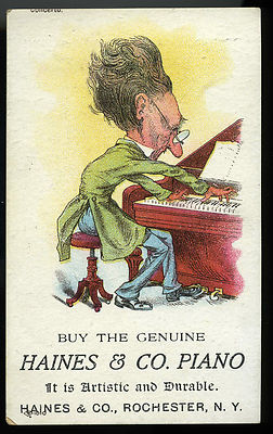 Title (ebay affiliate link): COMIC LONG HAIR MAN PLAYS CONCERT PIANO - HAINES & CO ROCHESTER NY