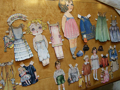 Title (ebay affiliate link): Antique Paper Doll Cut Outs Clothes Dress Hats Slips Old Ephemera Toy Game Craft
