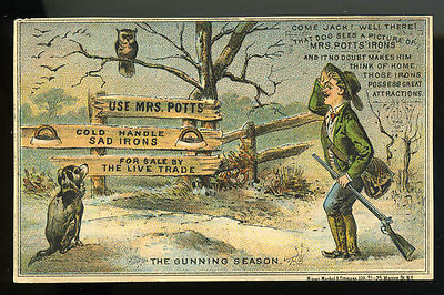 MRS POTTS' SAD IRON SIGN MAKES HUNTING DOG HOME SICK - THE GUNNING SEASON - OWL