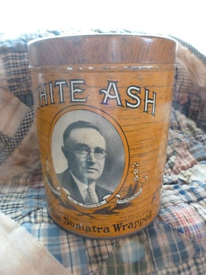 Title (ebay affiliate link): White Ash Cigar Tin. Sumatra Wrapped. Cprt H E Snyder 1928. Good Condition.