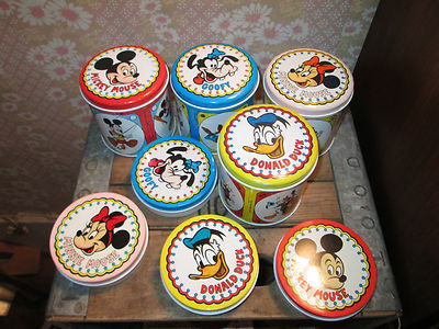 COMPLETE vintage set of 8 Tin Cheinco Canisters 1982 Disney Collectible Mickey