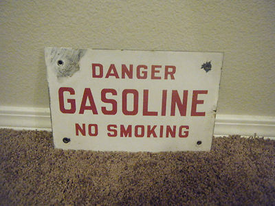 Title (ebay affiliate link): VINTAGE 1940's PORCELAIN DANGER GASOLINE NO SMOKING SIGN - VERIBRITE - CHICAGO