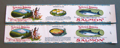 Title (ebay affiliate link): 2 DIF nice THE DALLES OREGON OR old TENINO INDIAN SALMON can labels SEUFERT BROS