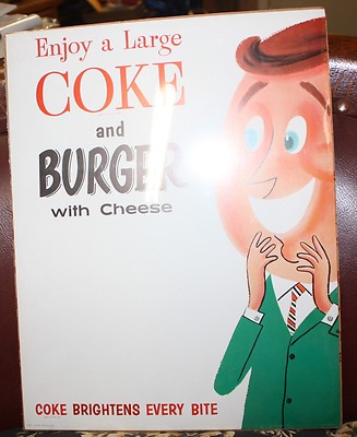 VINTAGE COKE and BURGER CARDBOARD SIGN