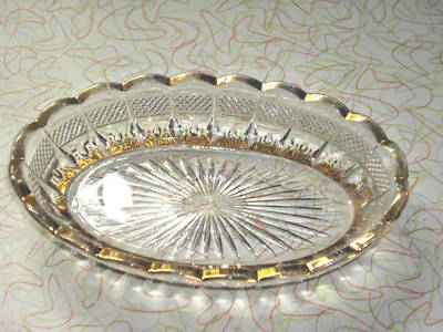 U.S. Glass Co. Relish/Bowl in Crystal w/ Gold