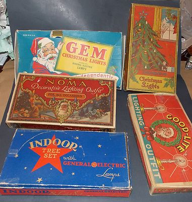5 VINTAGE CHRISTMAS LIGHT BOXES