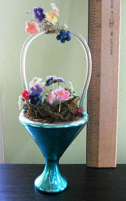 Vintage Glass large mercury glass basket with flowers christmas ornament