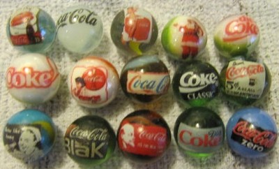 Title (ebay affiliate link): COCA COLA SODA POP 5/8 size GLASS MARBLES L@@K !