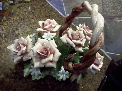 Title (ebay affiliate link): Rare CAPODIMONTE VINTAGE PORCELAIN ROSE BOUQUET BASKET w HANDLE made in ITALY