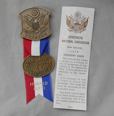 Title (ebay affiliate link): Democratic National Convention 1976 Honorary Badge New York City Award Ribbon
