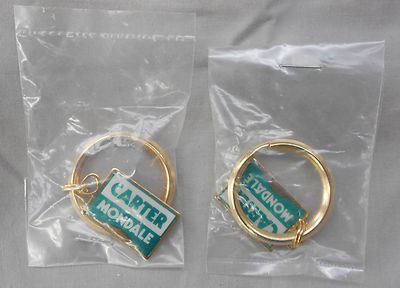 Pair of Vintage Democratic Presidential Campaign Keychains Carter Mondale 1976