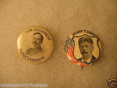 Title (ebay affiliate link): 2 Vintage pinback Political Buttons Henry Gage Alden Anderson Governor itemu7