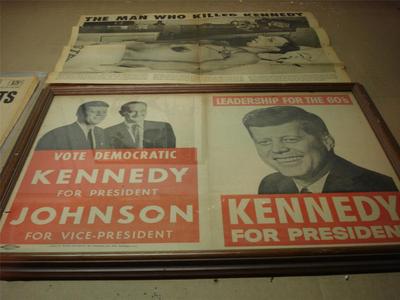 FRAMED VTG JOHN F KENNEDY PRESIDENT ELECTION PAGE OSWALD AUTOPSY PHOTO 1960'S