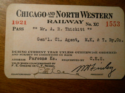 1921 Train Pass CHICAGO & NORTH WESTERN
