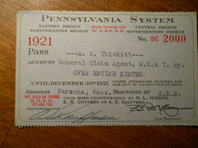 1921 Train Pass PENNSYLVANIA SYSTEM
