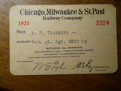 1921 Train Pass CHICAGO, MILWAUKEE & ST. PAUL