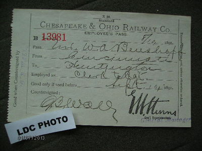 CHESAPEAKE & OHIO RAILWAY RARE 1891 PASS