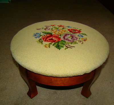 Title (ebay affiliate link): Vintage Needlepoint Footstool Butter Yellow Florals