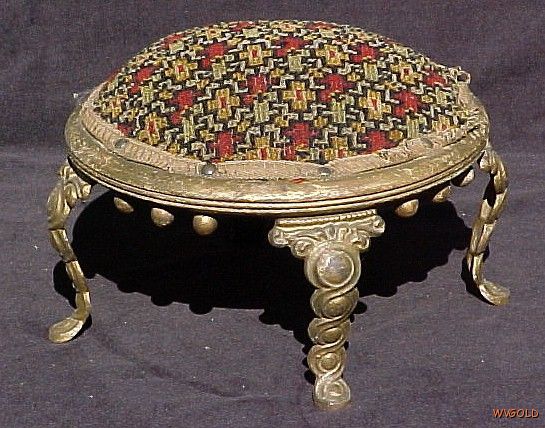 Title (ebay affiliate link): Antique Wood/Cast COVERED ROUND FOOT STOOL (Footstool)