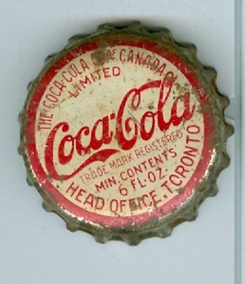 VINTAGE COCA COLA SODA CORK BOTTLE CAP TORONTO CANADA