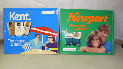 Title (ebay affiliate link): VINTAGE 1982 KENT & 1988 NEWPORT CIGARETTES METAL ADVERTISING SIGNS 17 1/2 X 22